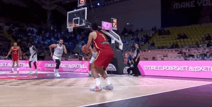 第四节比赛,阿尔达马接球三分再中已19分,西班牙追平打停意大利。
