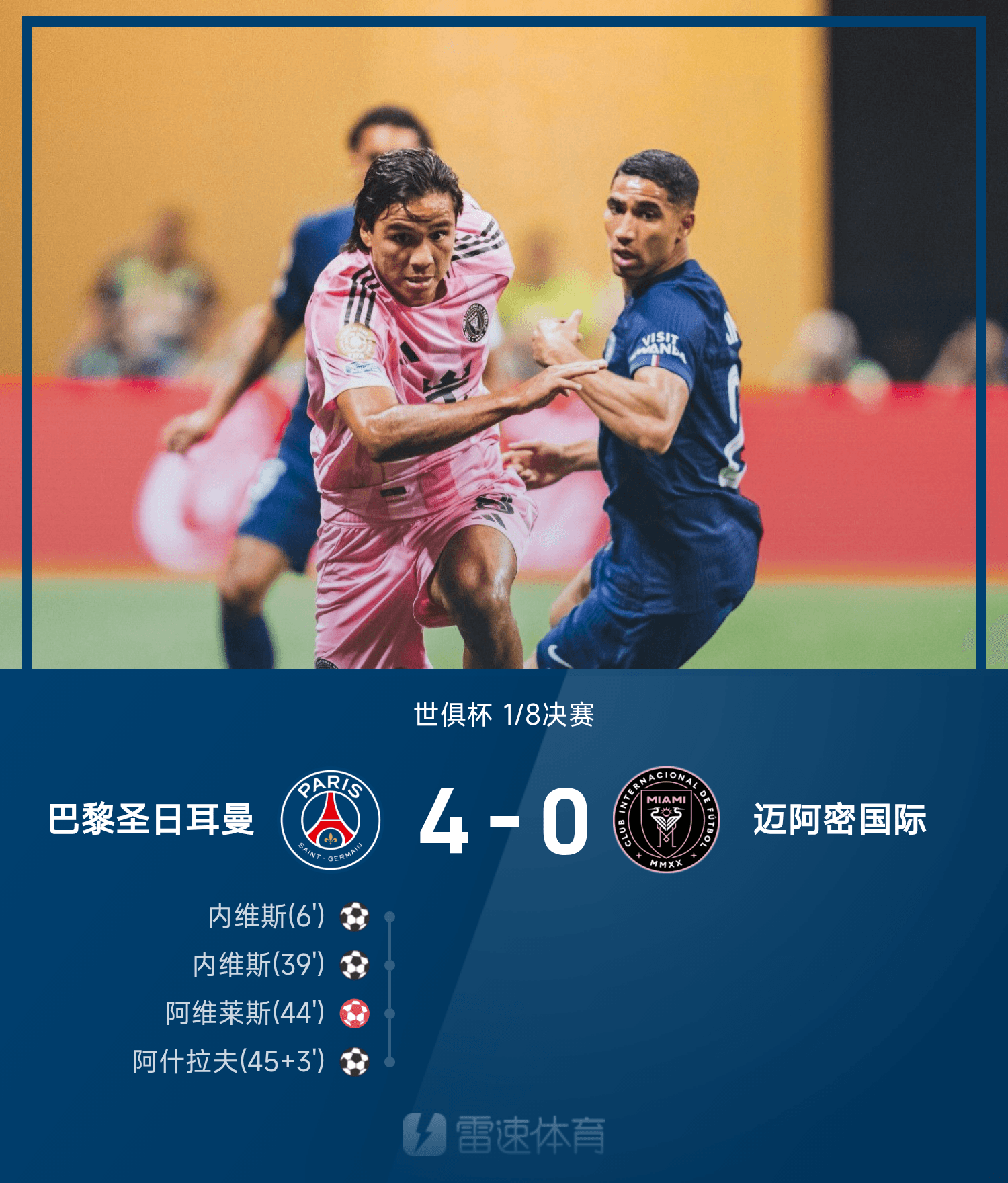 官方网站-世俱杯战报:内维斯双响,阿什拉夫破门,巴黎4-0淘汰迈阿密